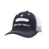 - Black cotton twill front and grey mesh back.