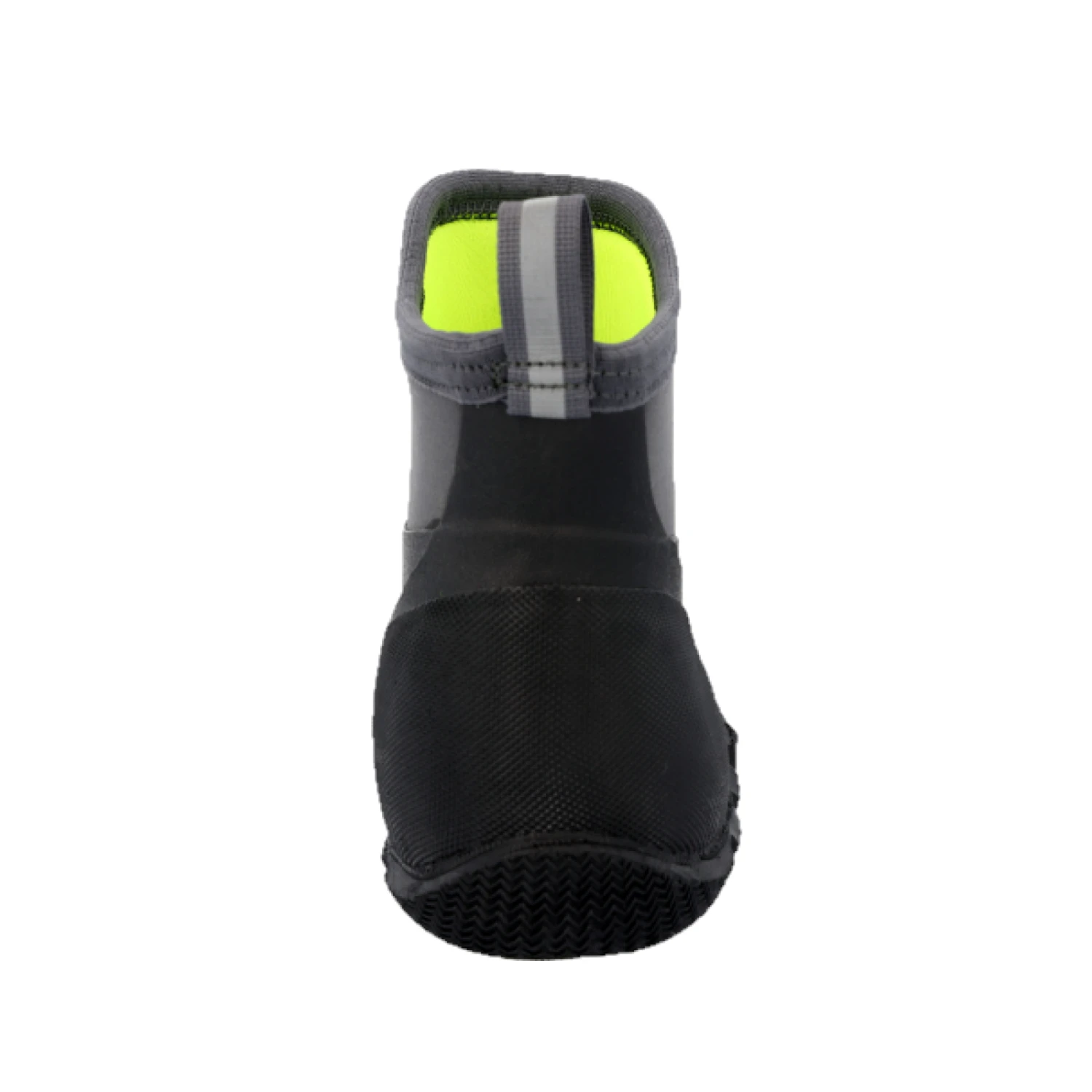 - Black neoprene ankle bootie for comfort and performance.